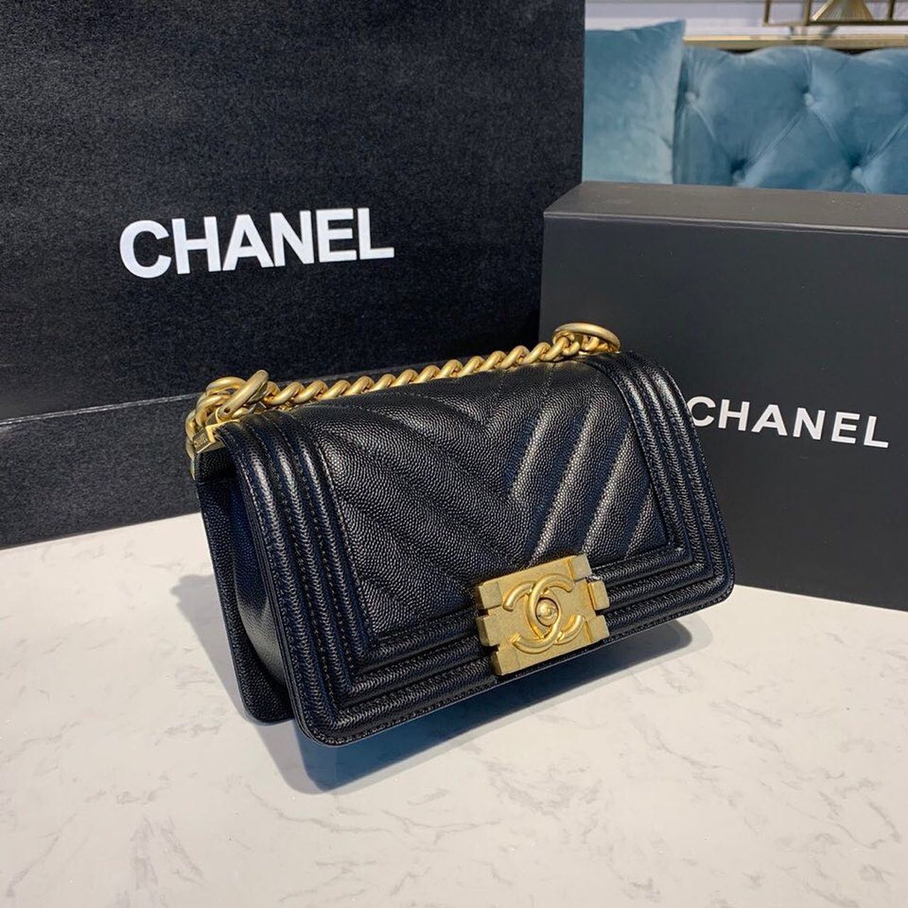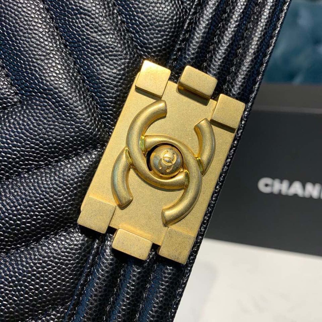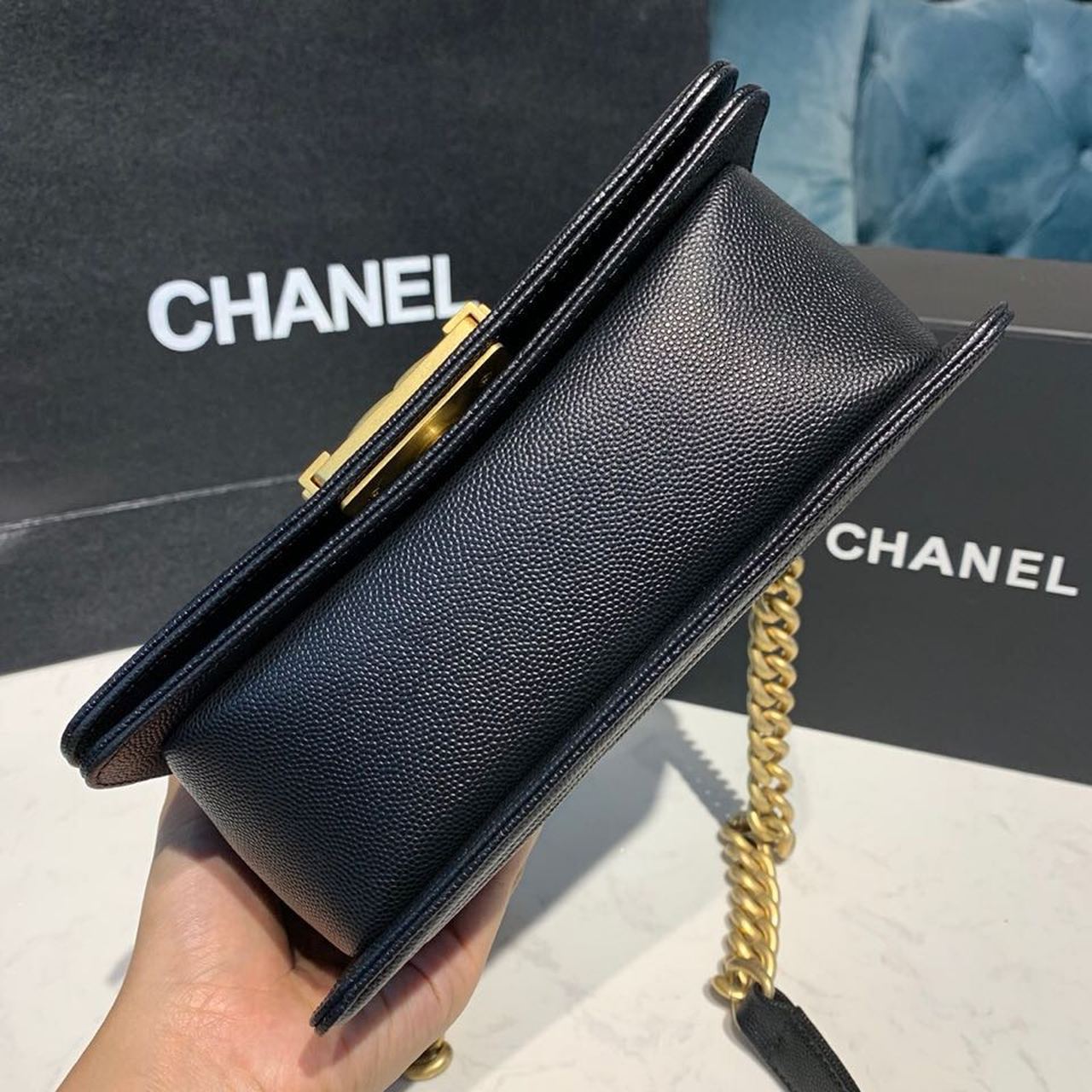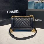 Chanel Chevron Boy Bag 20cm Caviar Leather Antique Gold Hardware Fall/Winter Act 1 Collection Black