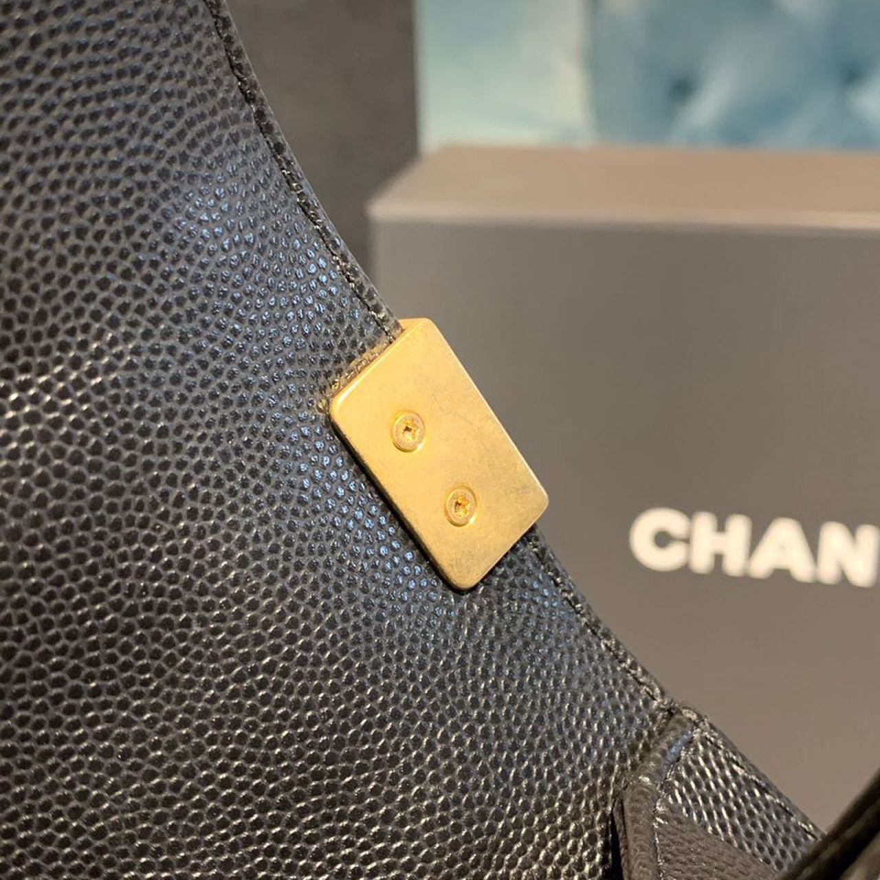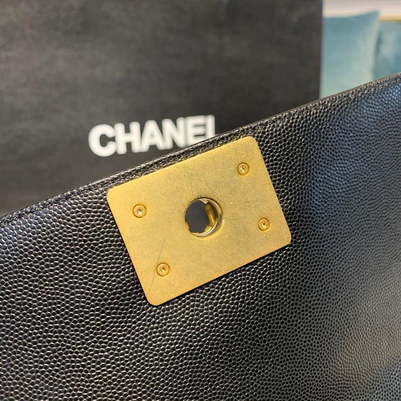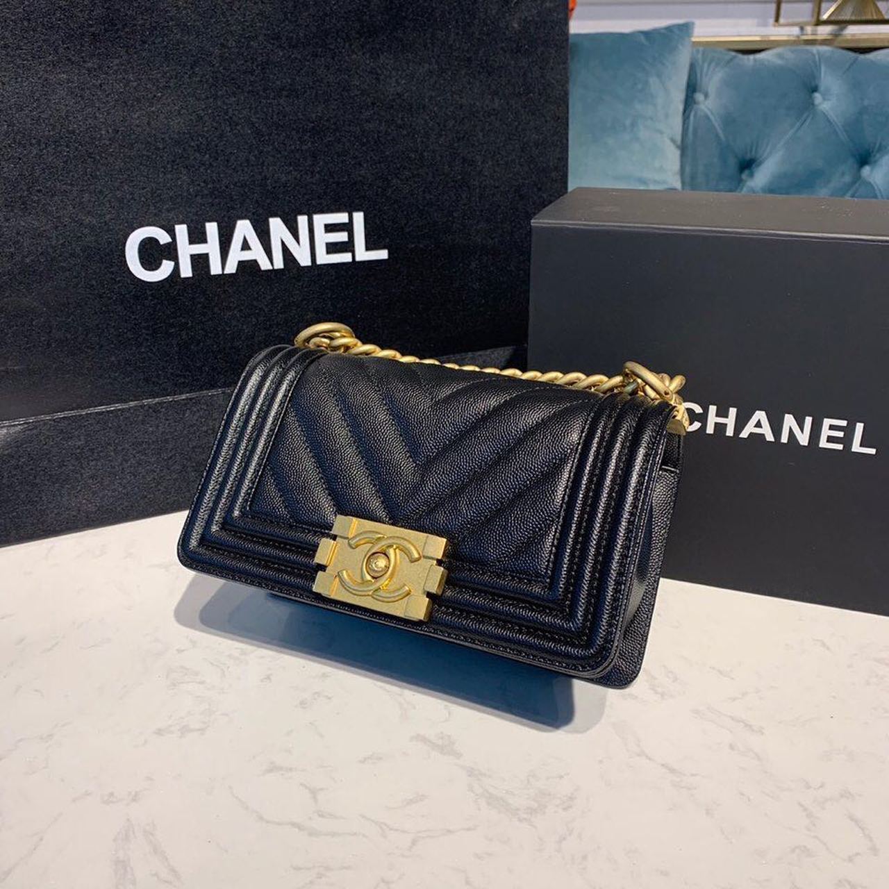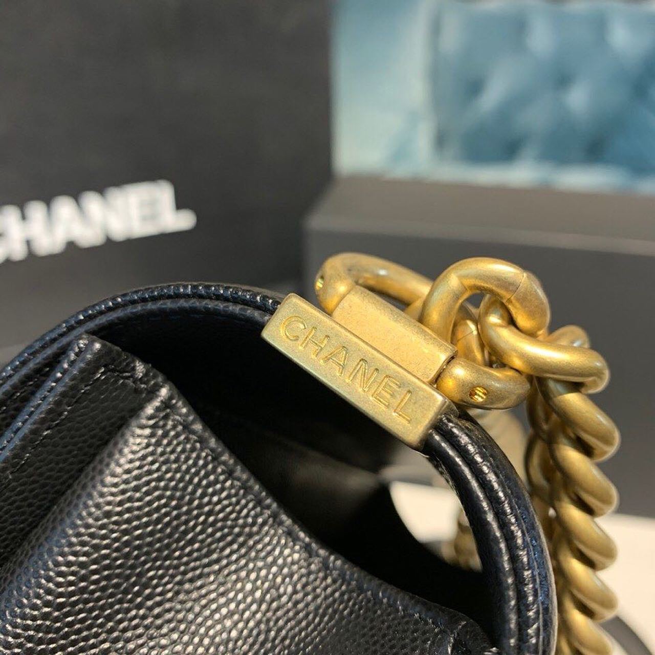 Chanel Chevron Boy Bag 20cm Caviar Leather Antique Gold Hardware Fall/Winter Act 1 Collection Black