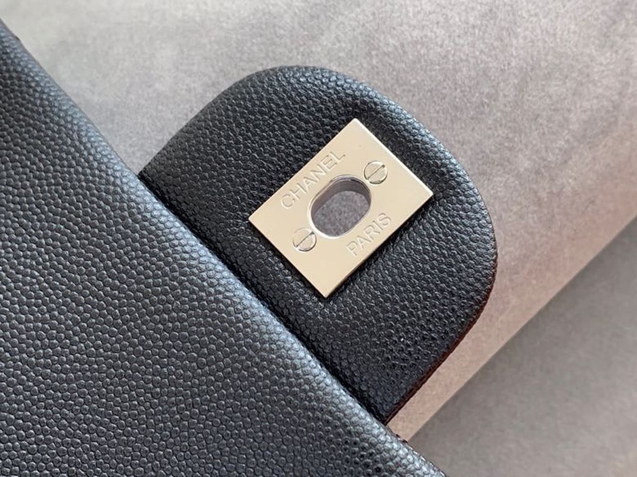 Chanel Classic Flap Bag 20cm Silver Hardware Caviar Leather Spring/Summer Collection Black