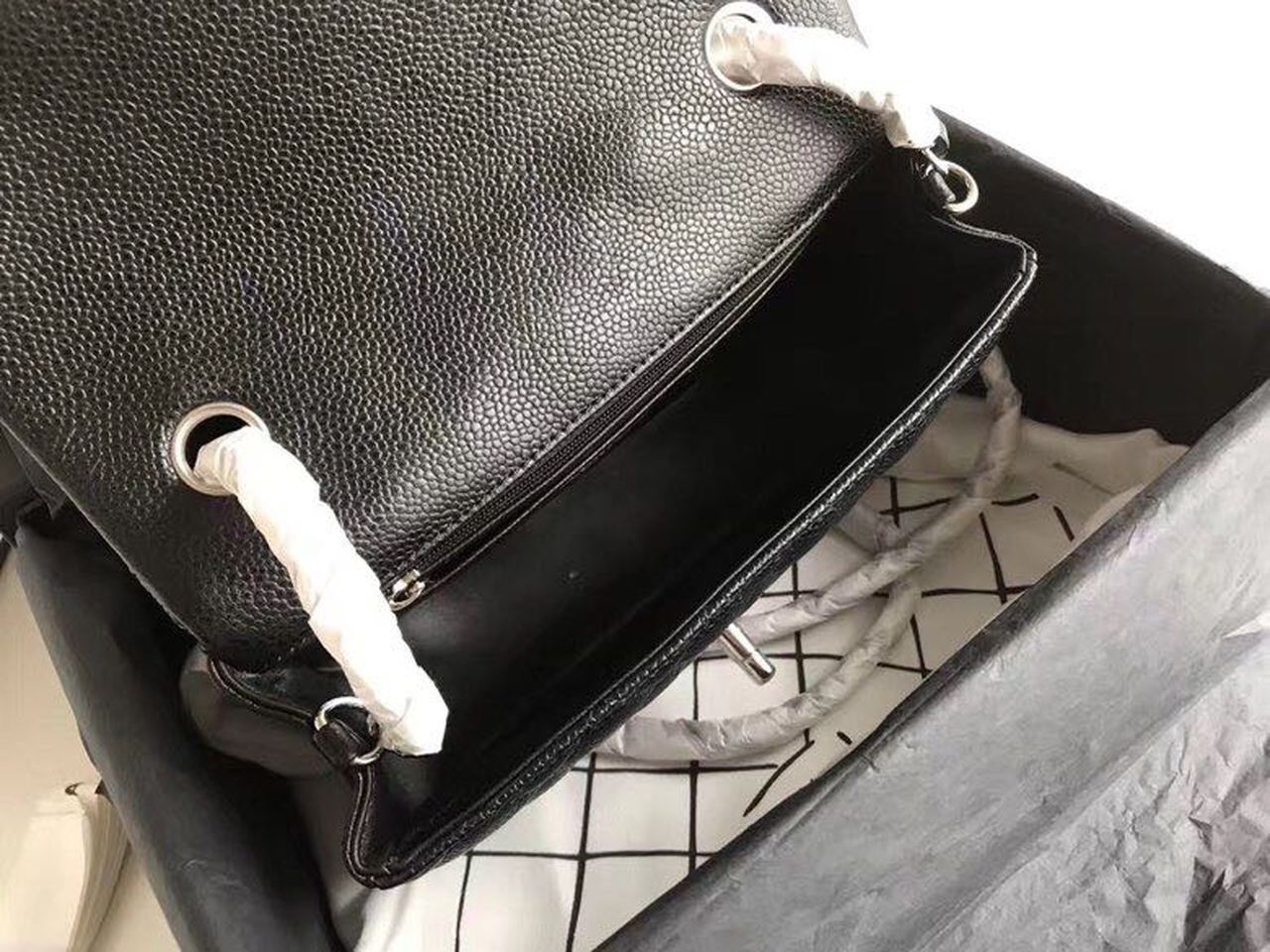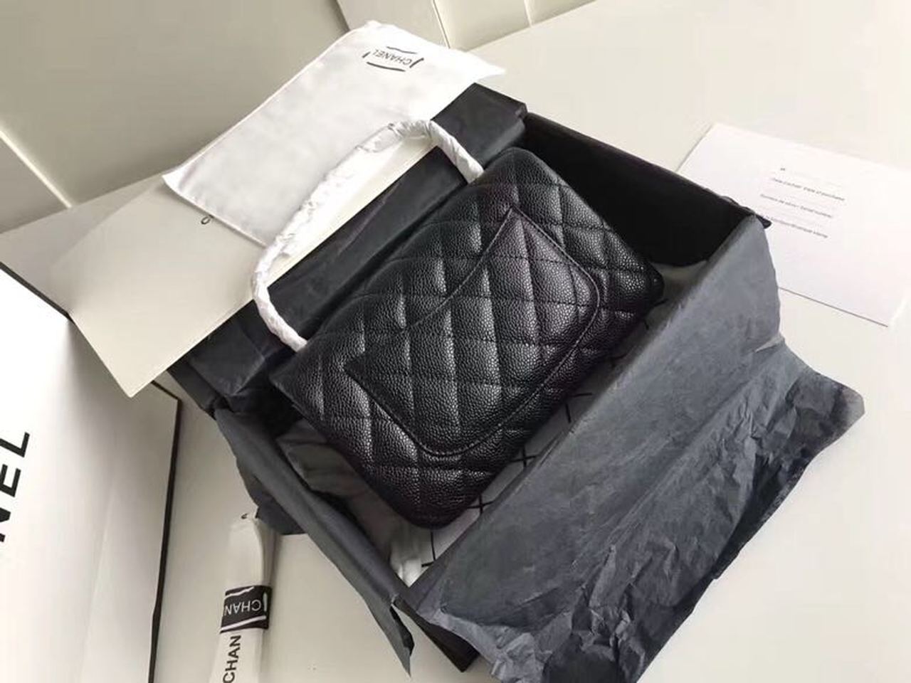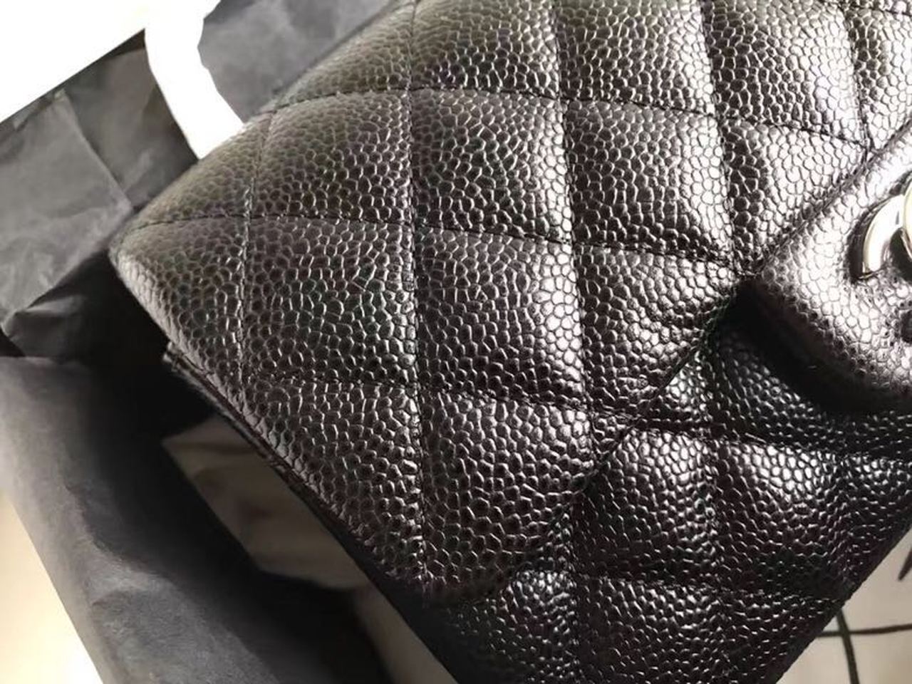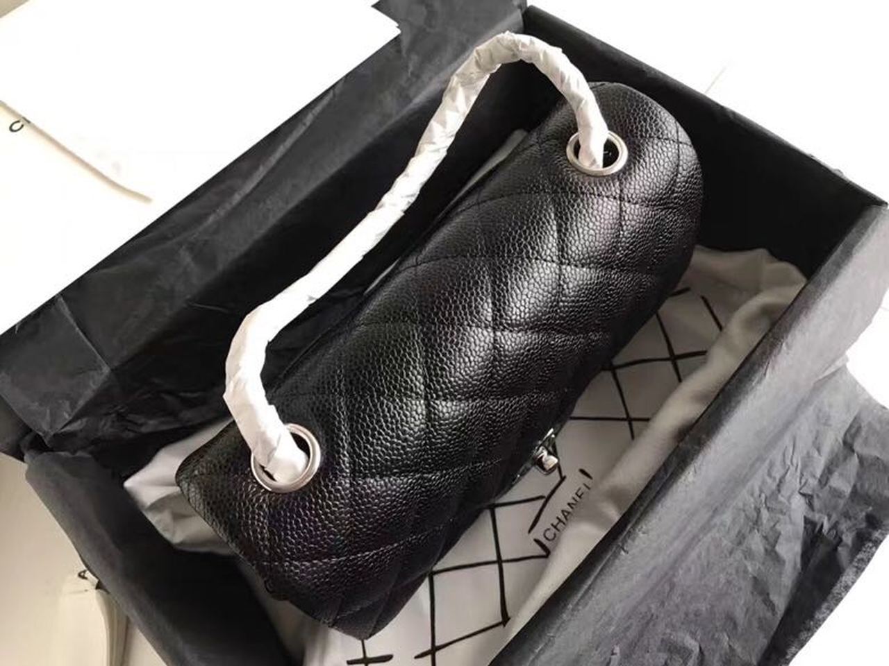 Chanel Classic Flap Bag 20cm Silver Hardware Caviar Leather Spring/Summer Collection Black