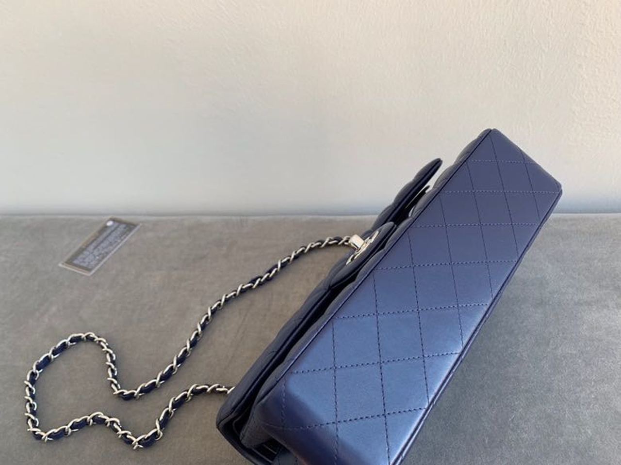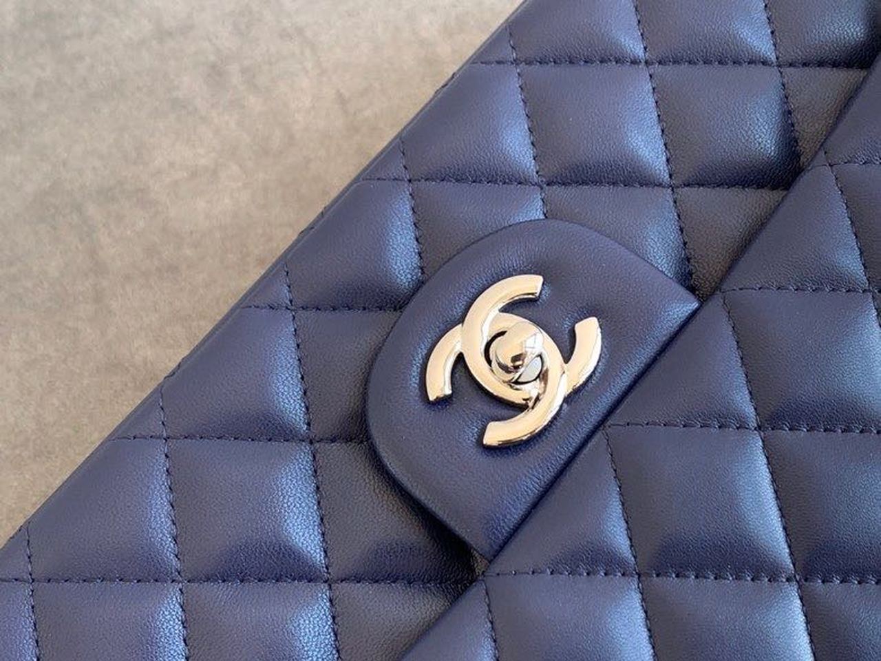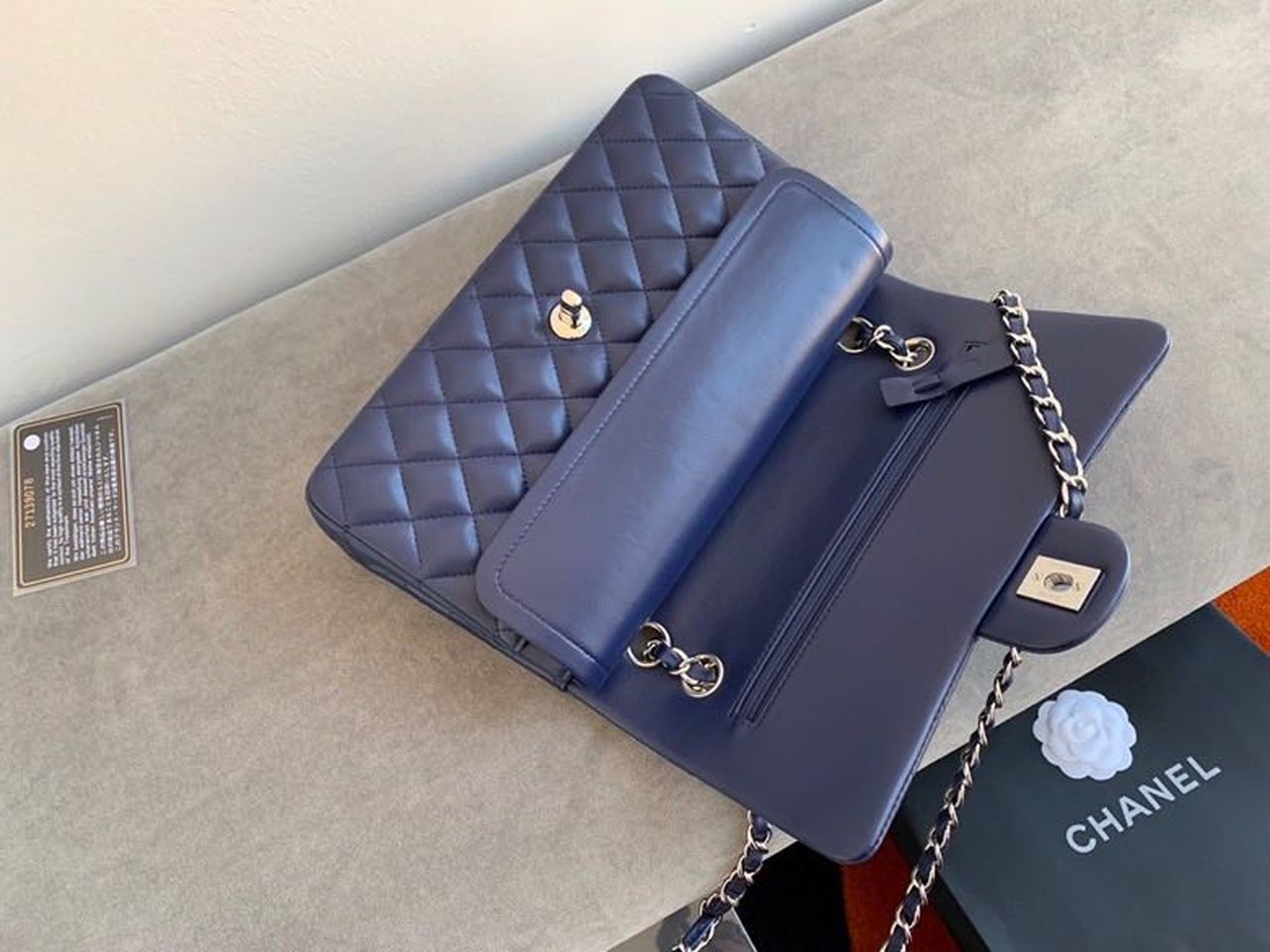 Chanel Classic Flap Bag Silver Hardware Lambskin Leather Spring/Summer Collection Navy Blue