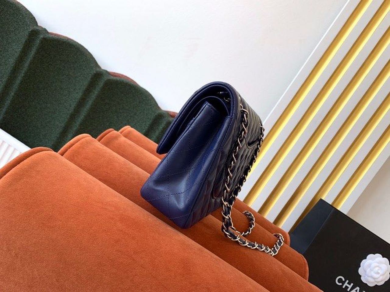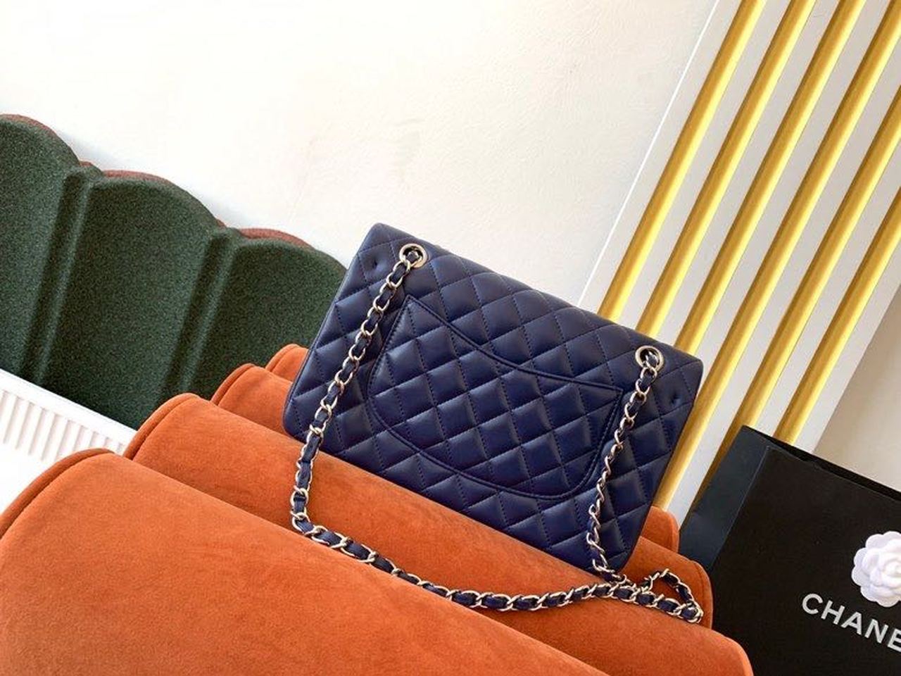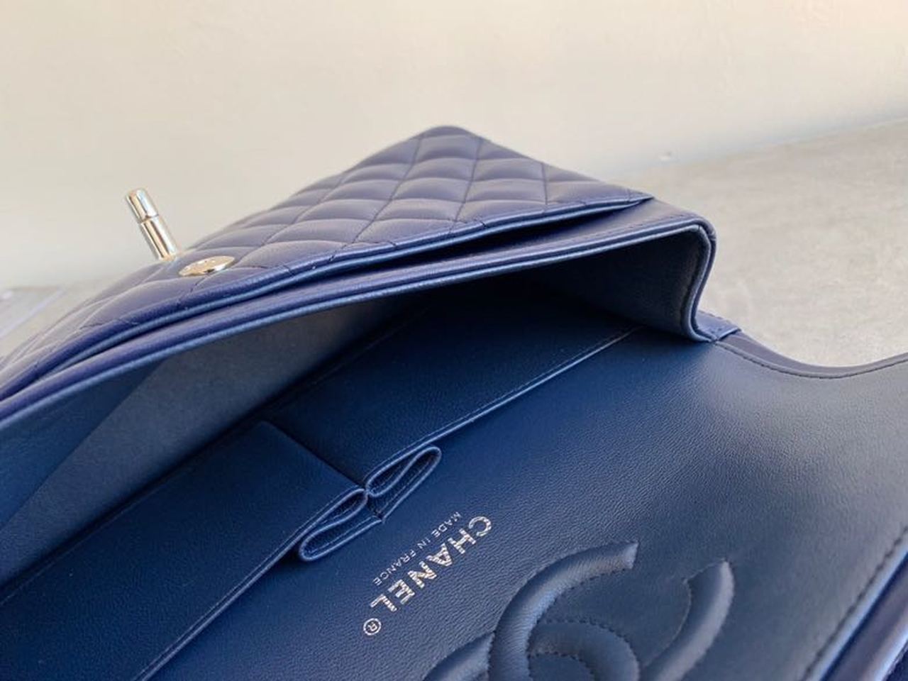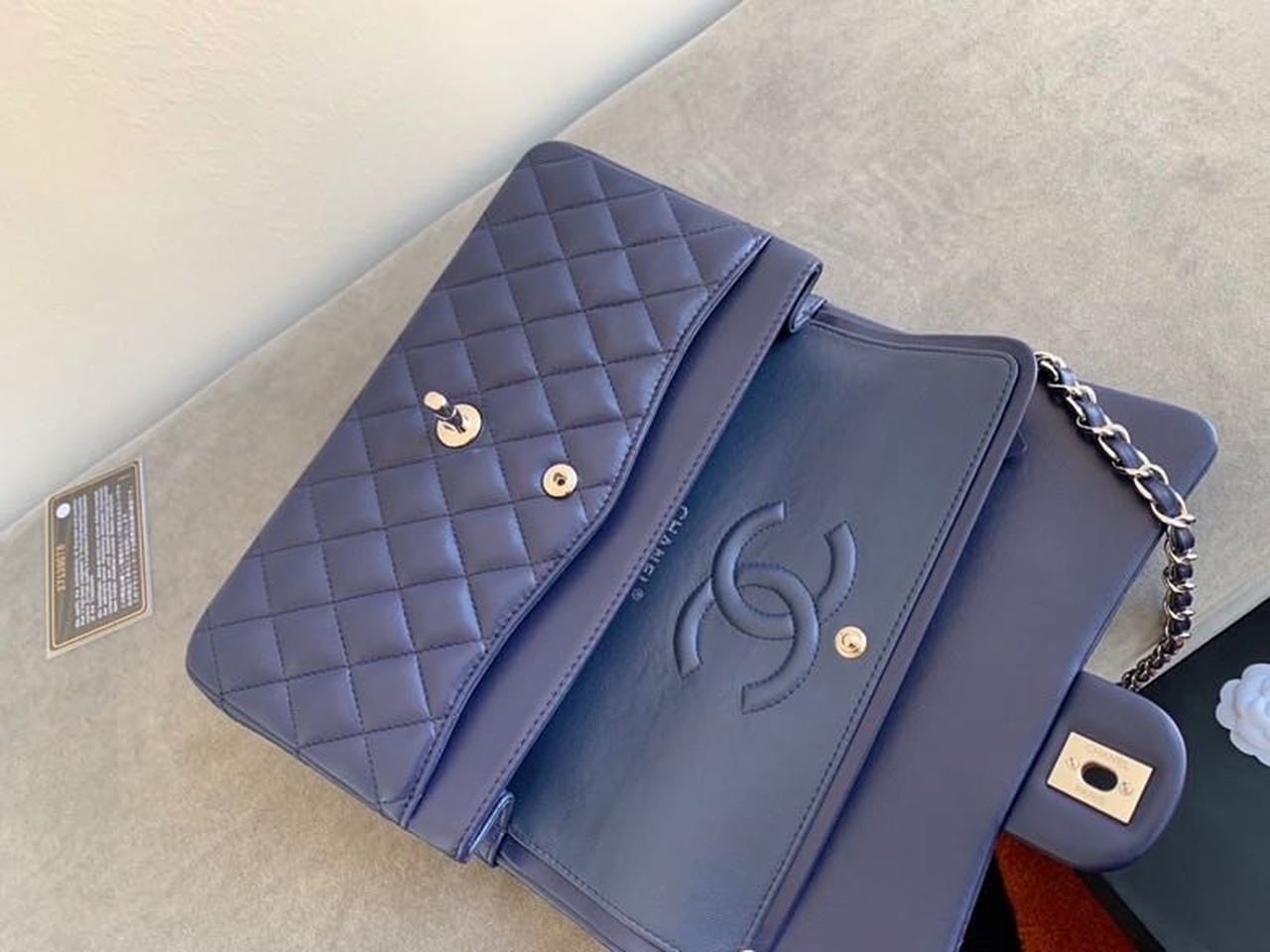 Chanel Classic Flap Bag Silver Hardware Lambskin Leather Spring/Summer Collection Navy Blue