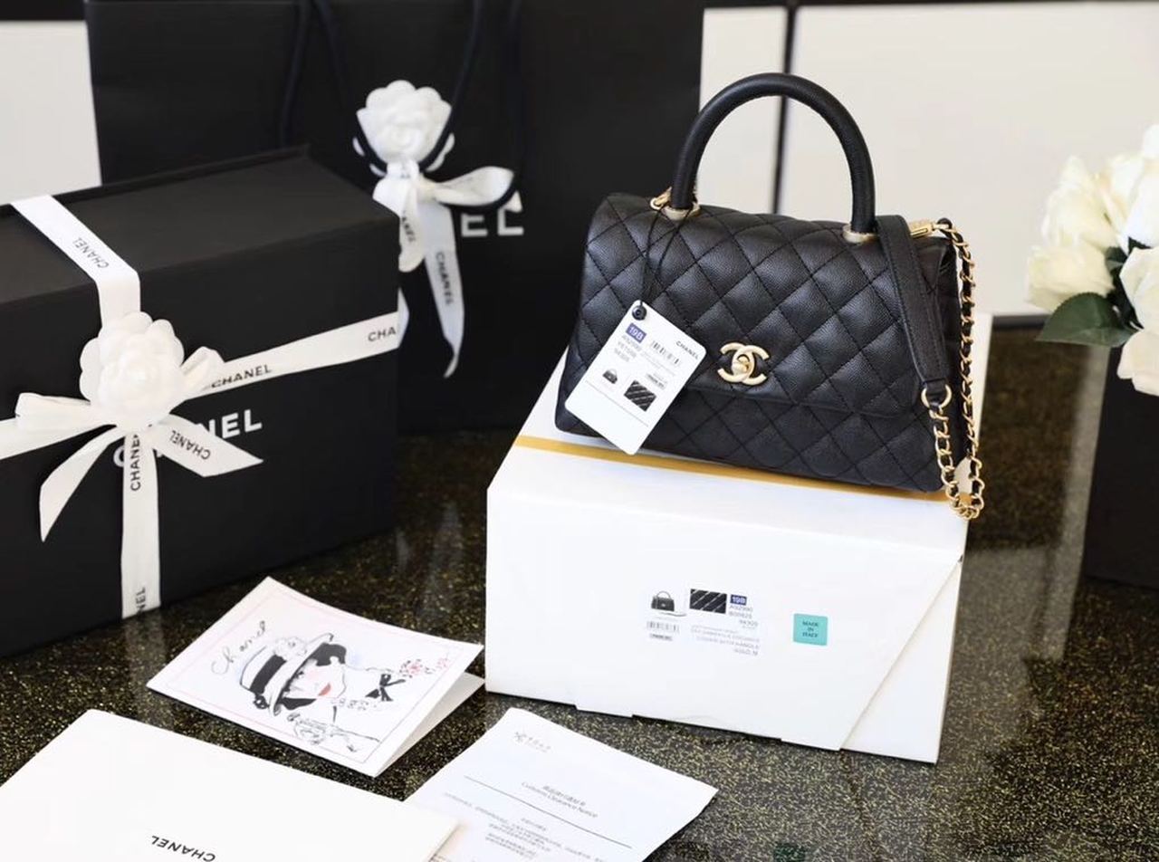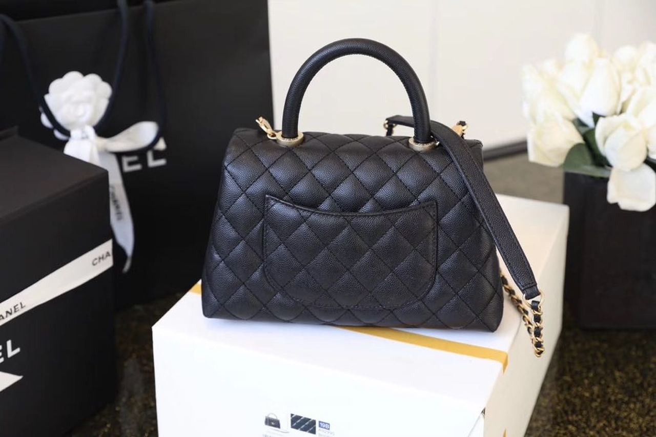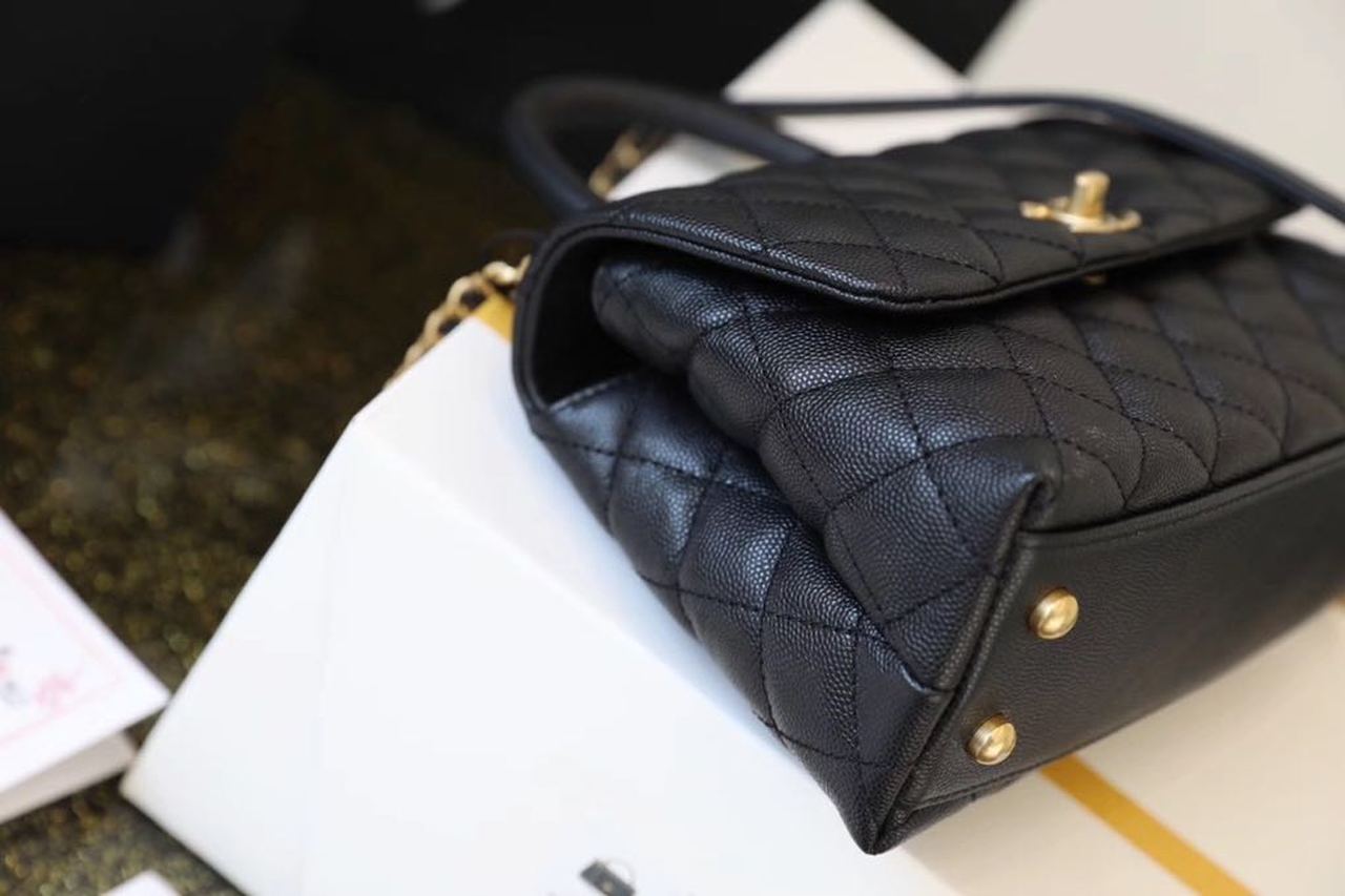 Chanel Coco Handle Quilted Lizard Handle Bag 24cm Caviar Leather Gold Hardware Spring/Summer Act 1 Collection, Black/Red