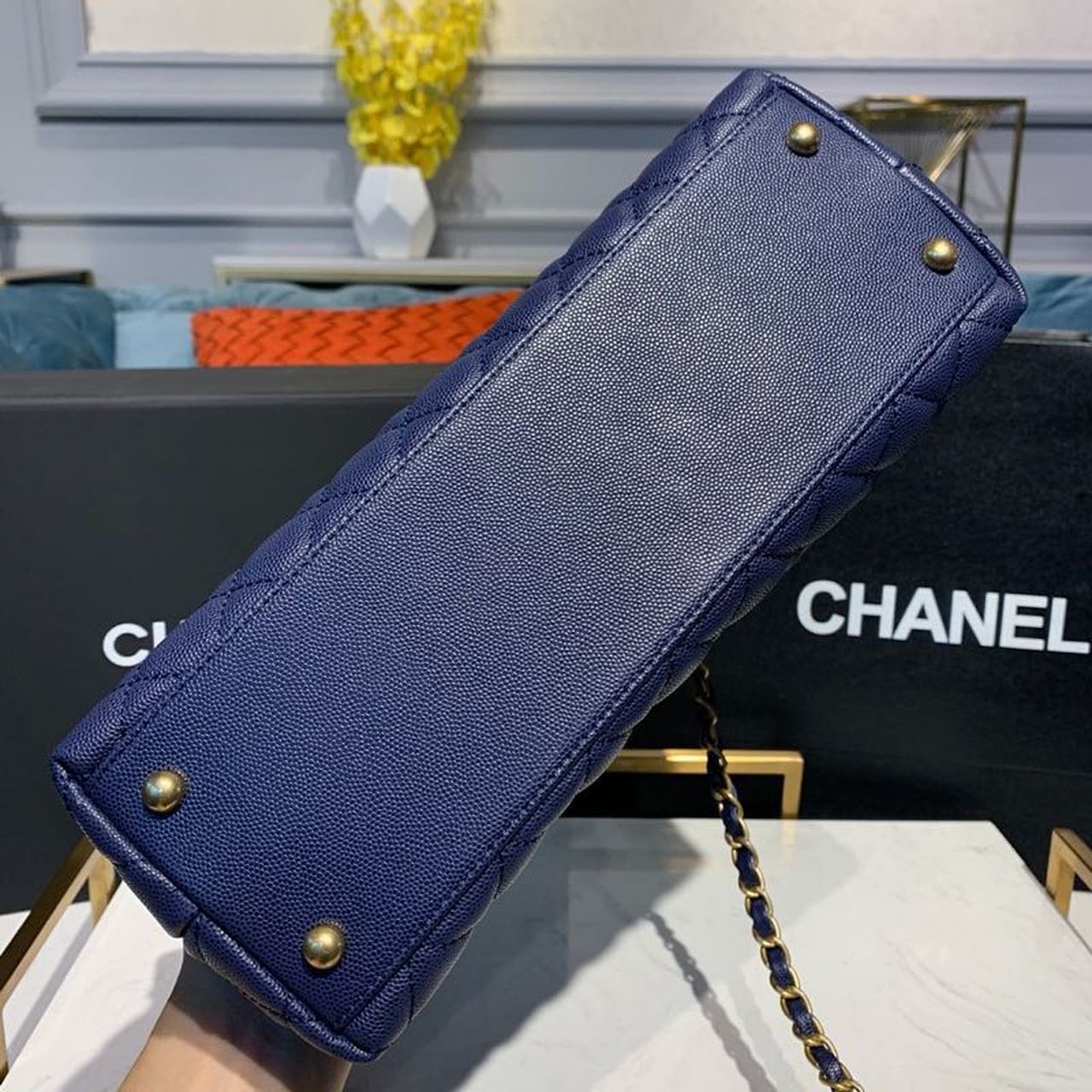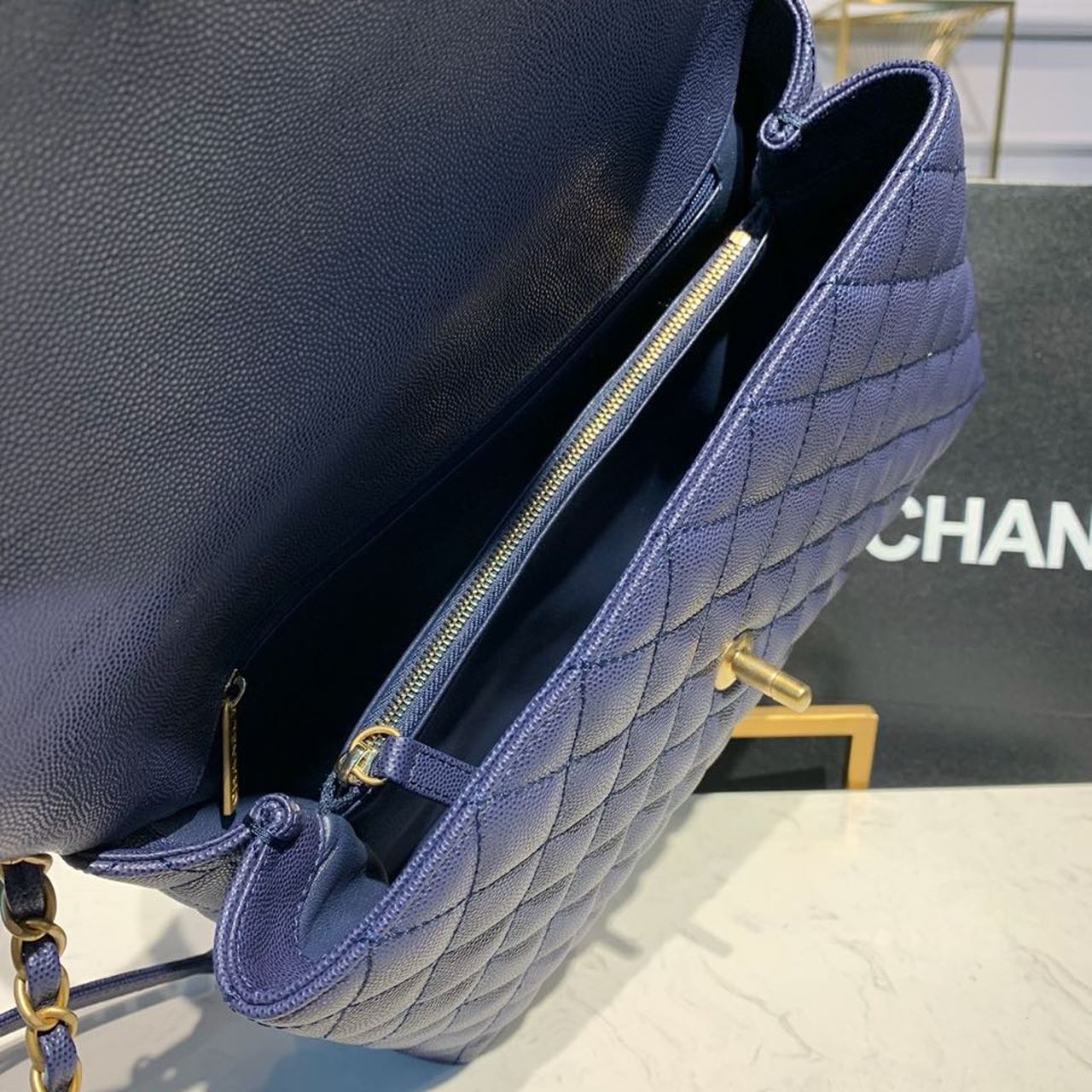 Chanel Coco Handle Quilted Lizard Handle Bag 30cm Caviar Leather Gold Hardware Spring/Summer Act 1 Collection, Blue