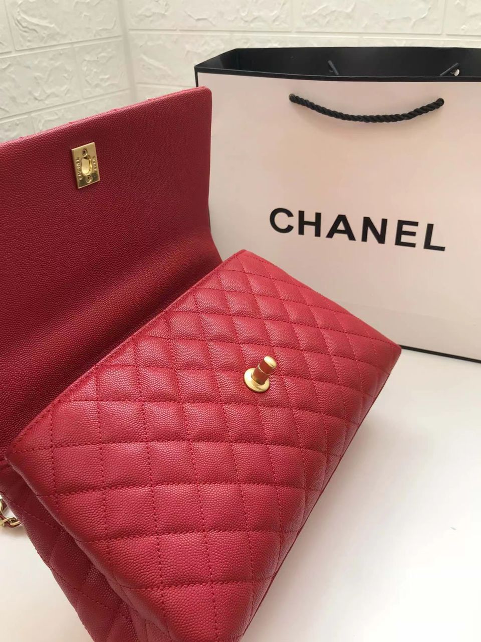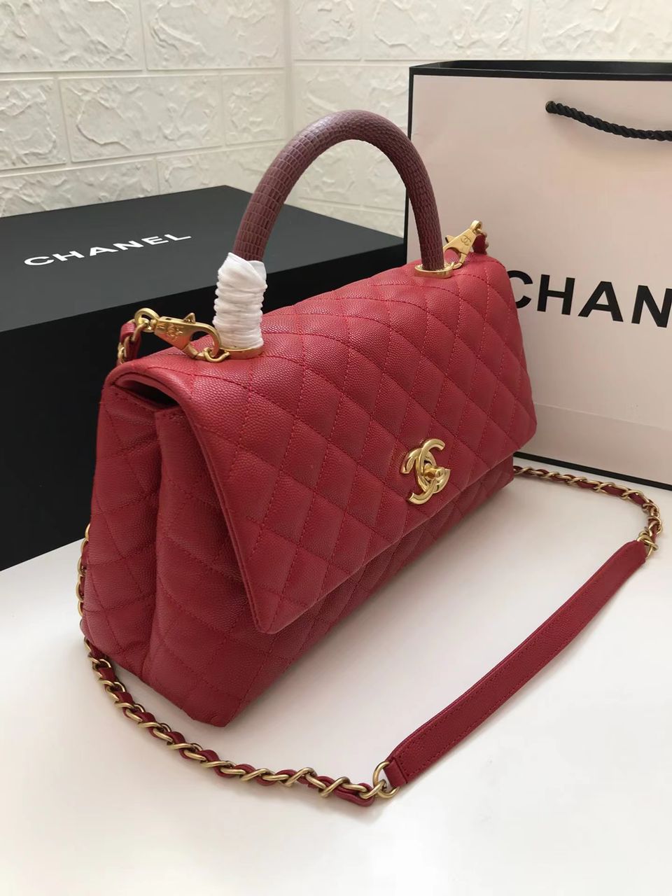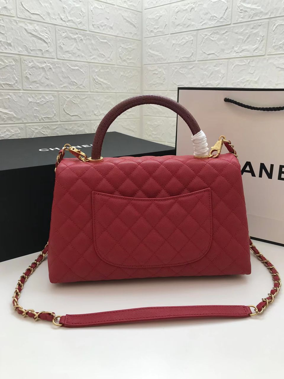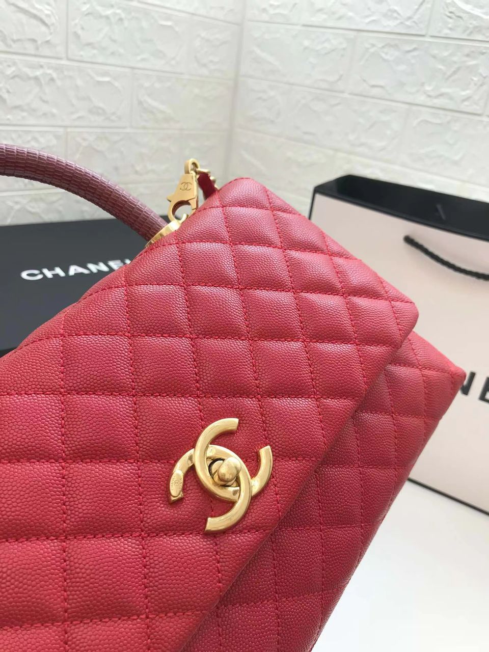 Chanel Coco Handle Quilted Lizard Handle Bag 30cm Caviar Leather Gold Hardware Spring/Summer Act 1 Collection, Red