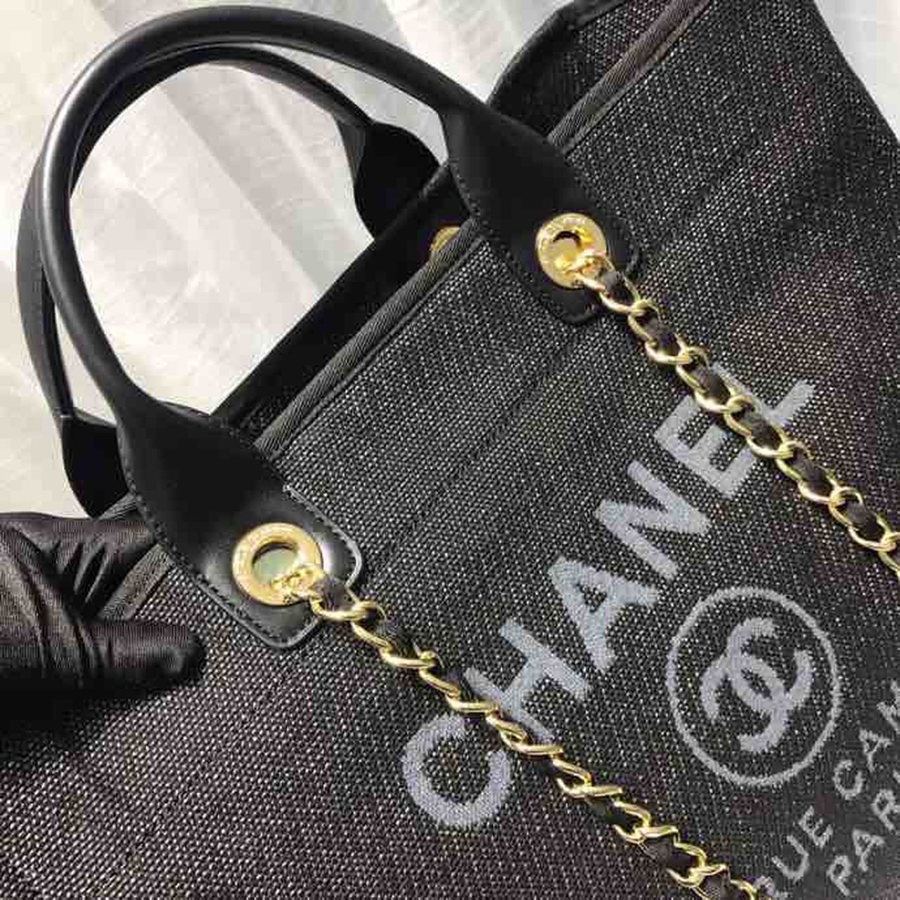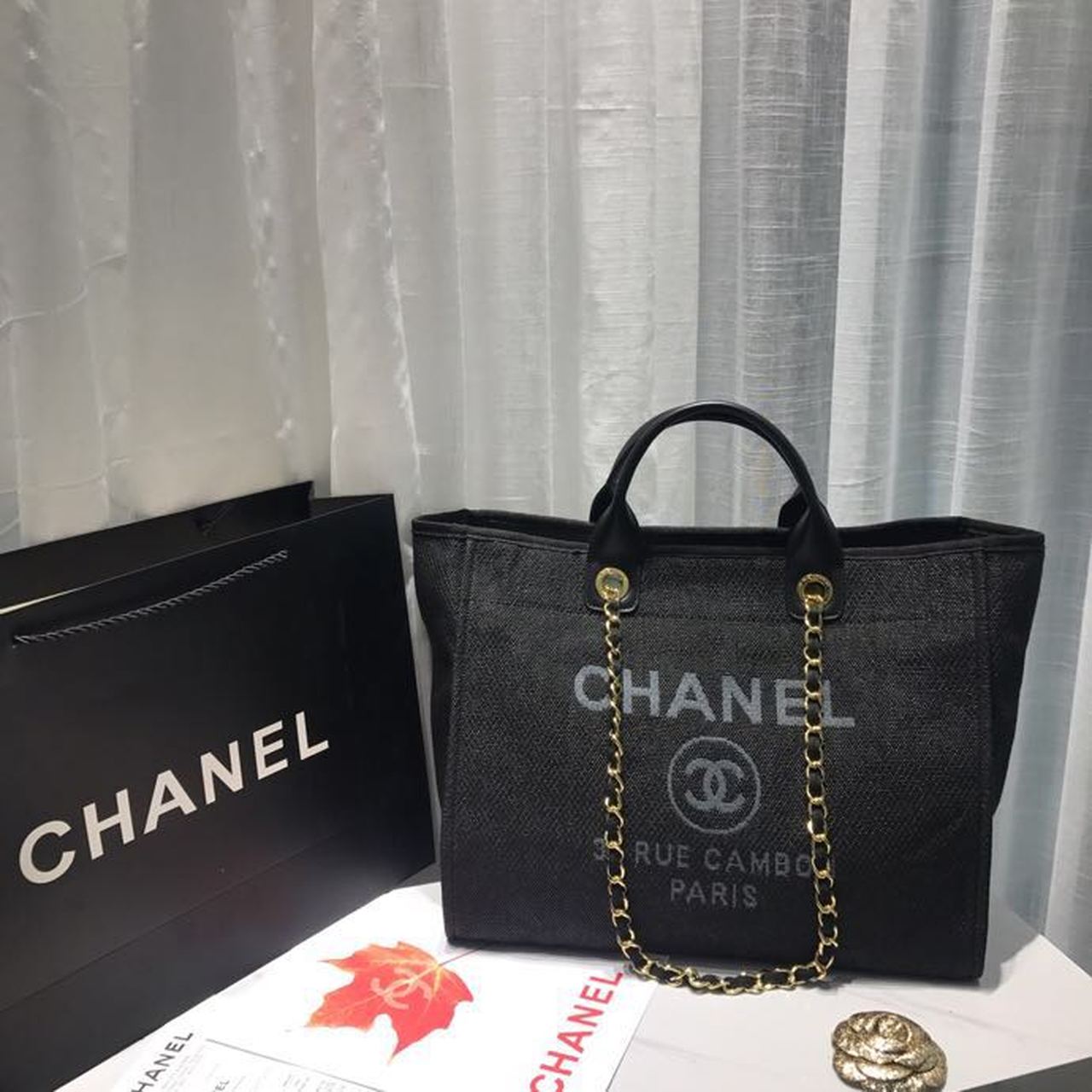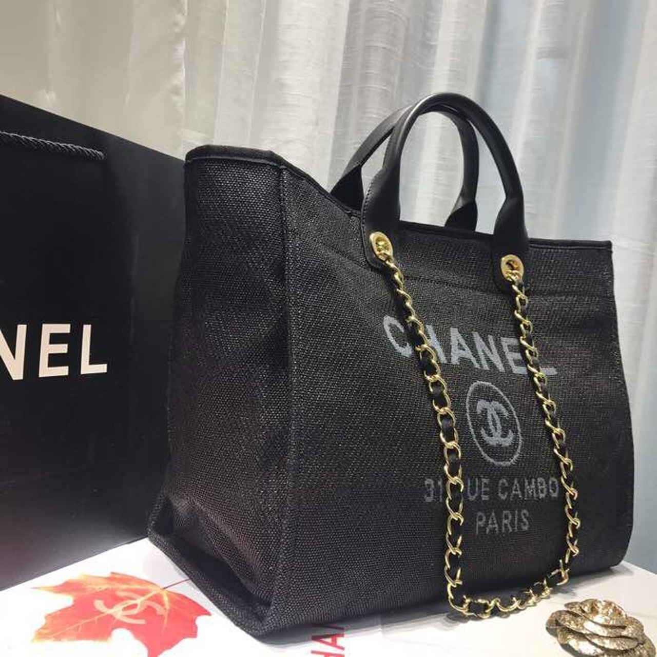 Chanel Deauville Tote 38cm Canvas Bag Spring/Summer Collection Black/Grey/Multi
