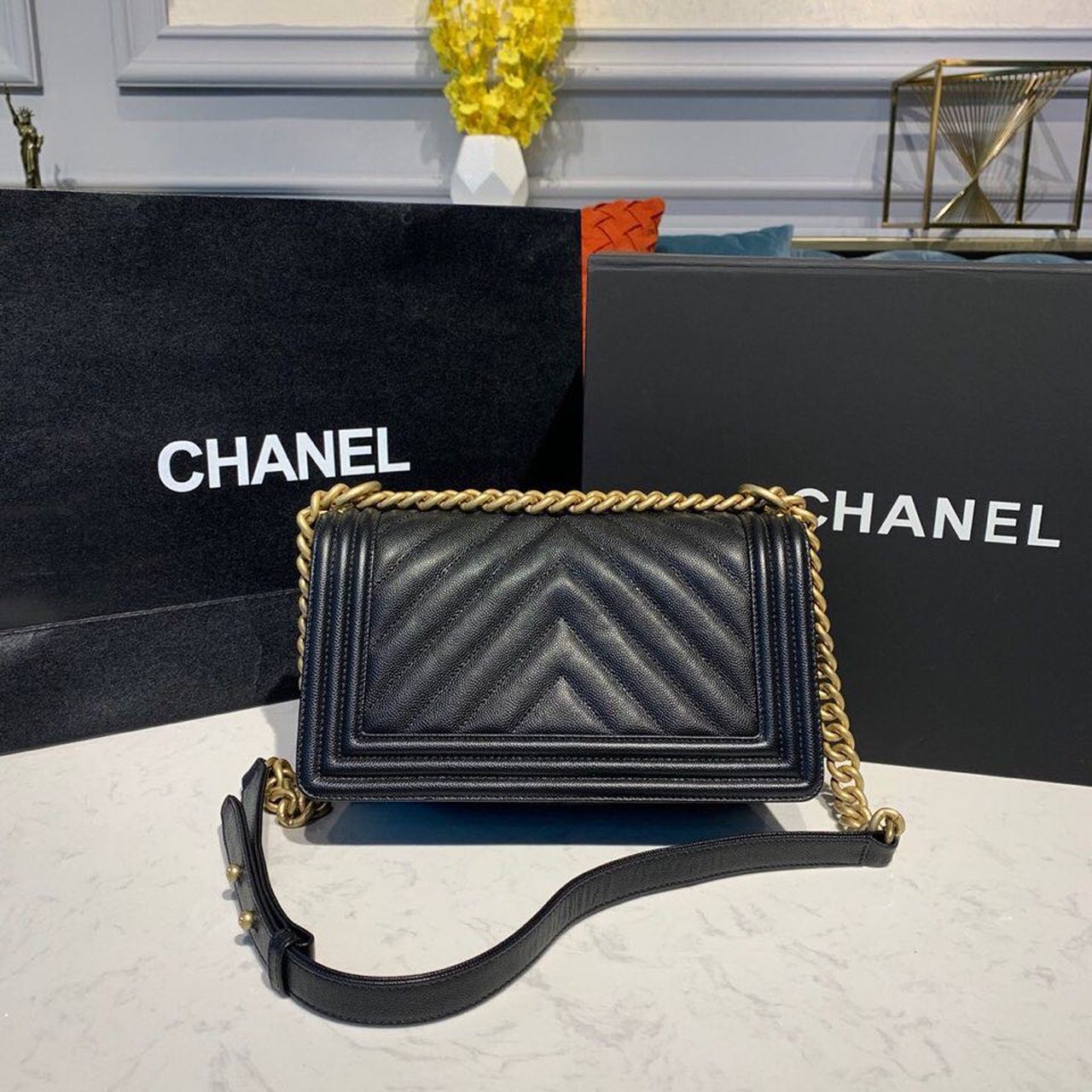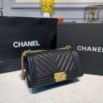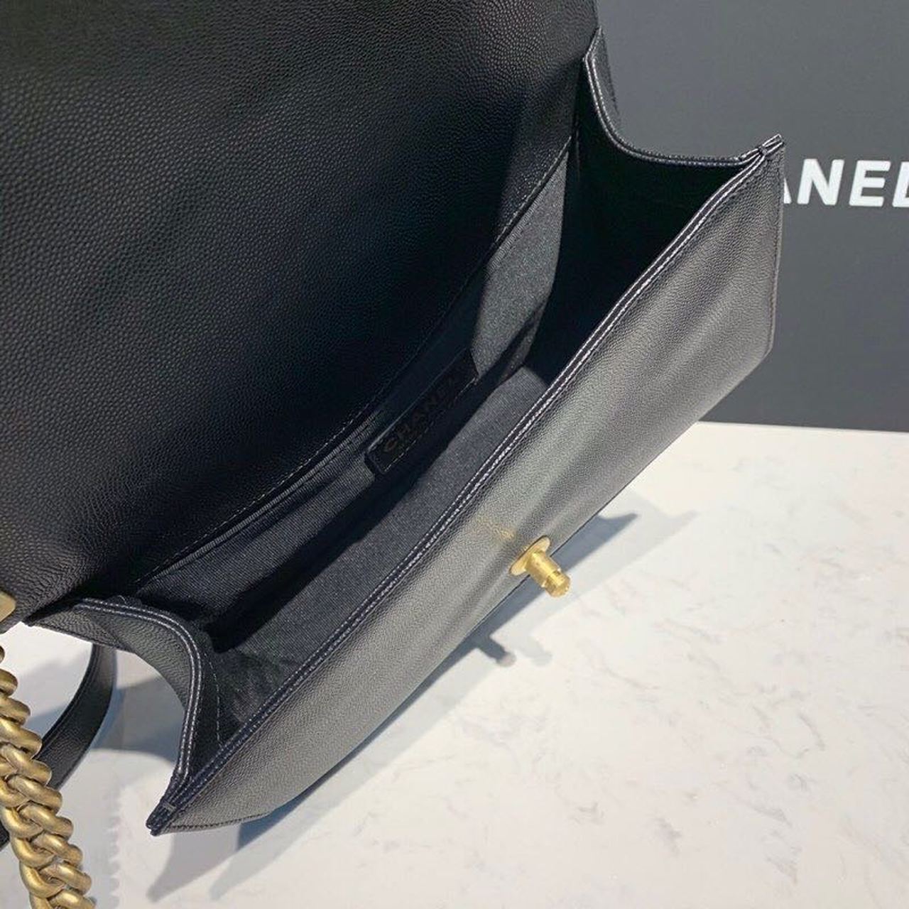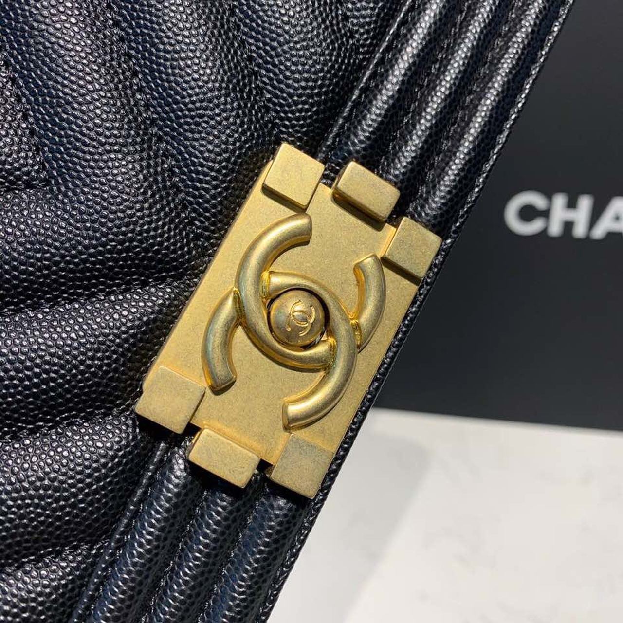 Chanel Quilted Boy Bag Caviar Leather Antique Gold Hardware Fall/Winter Act 1 Collection Black