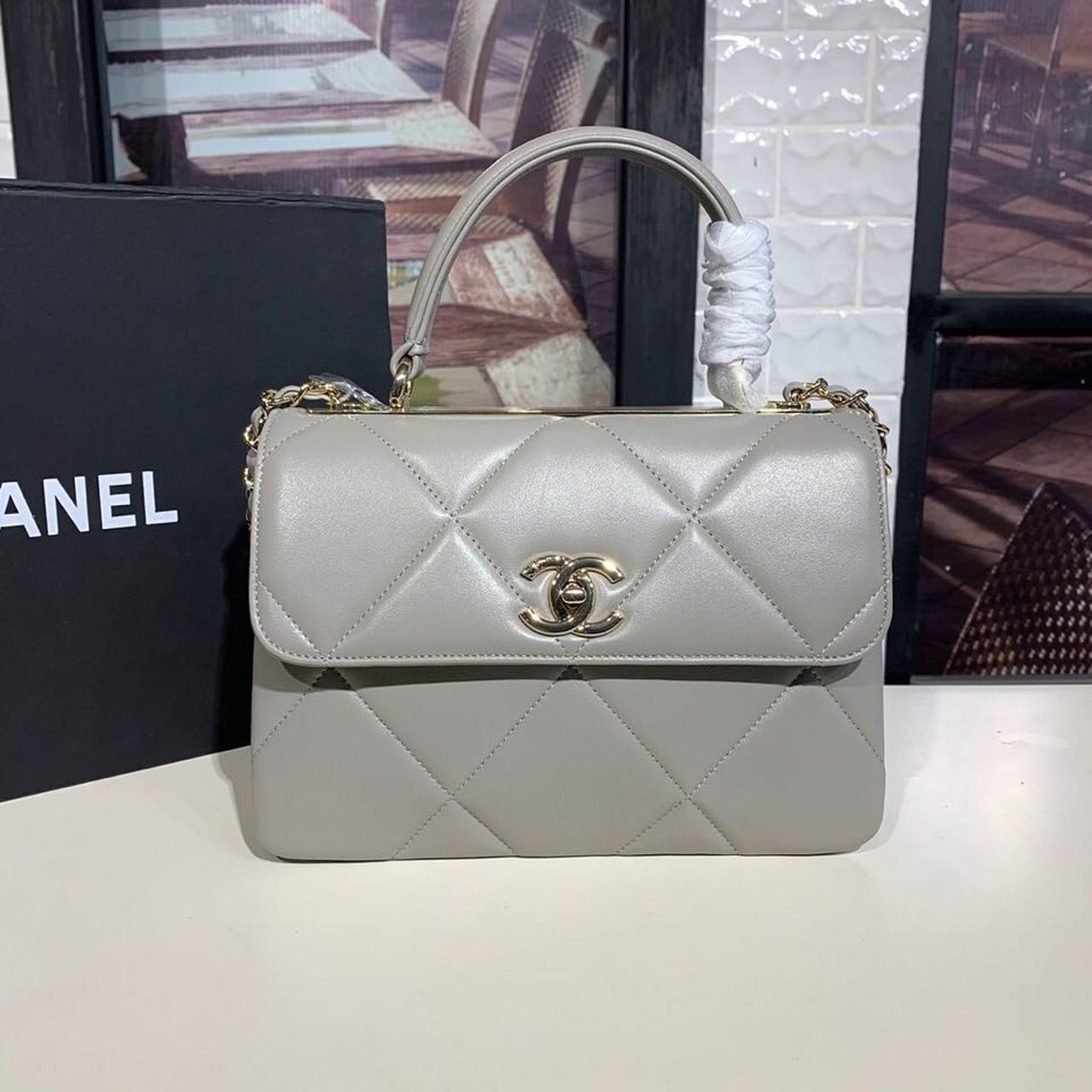 Chanel Trendy CC Maxi Top Handle Bag 25cm Lambskin Leather Fall/Winter Act 1 Collection Grey