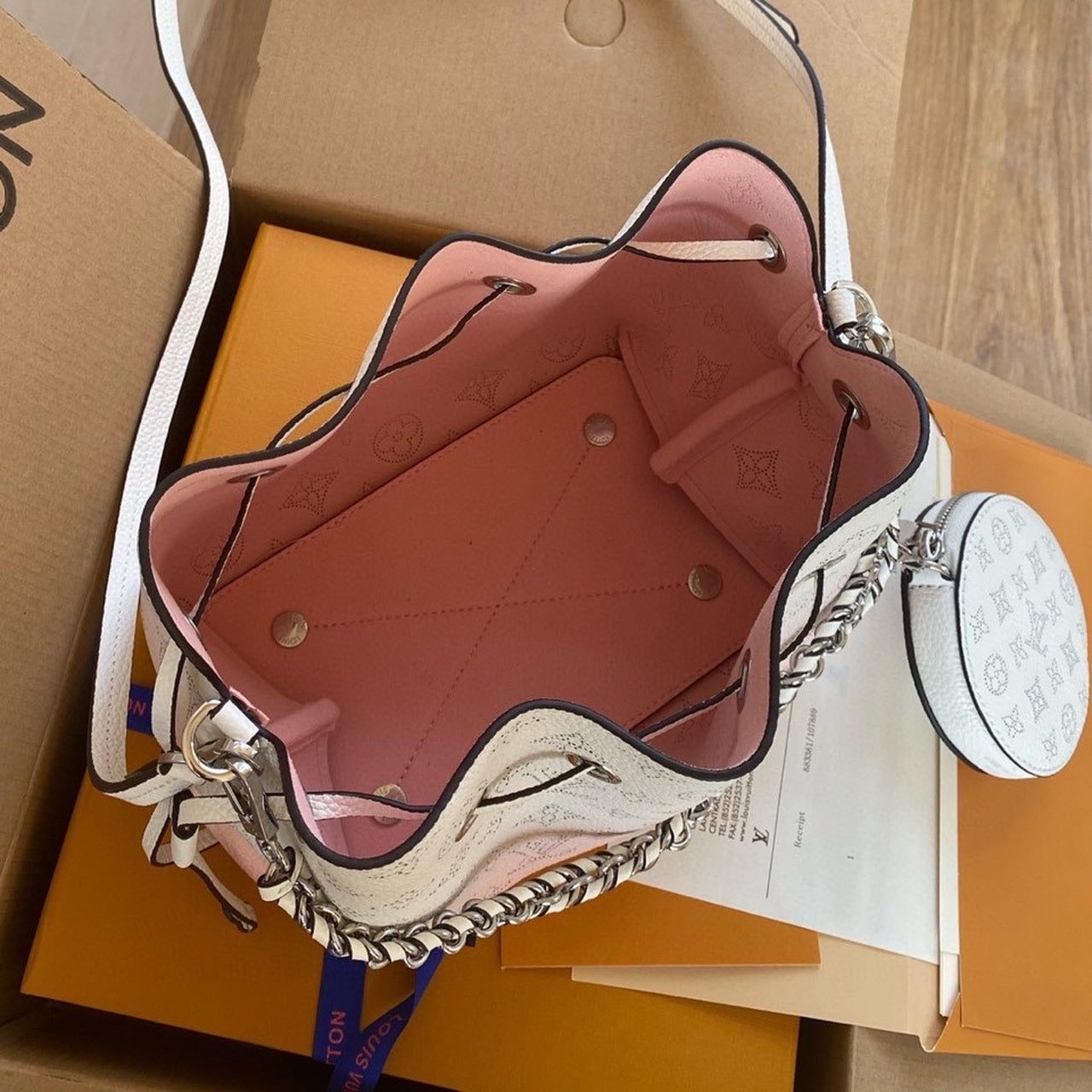 Louis Vuitton Bella Bucket Bag 22cm Mahina Calfskin Leather Spring/Summer Collection M57856 Light Pink