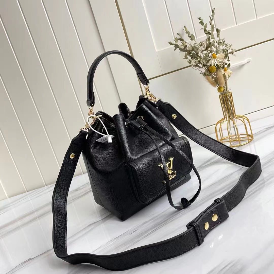 Louis Vuitton LockMe Bucket Bag 24cm Grained Calfskin Leather Spring/Summer Collection M57687 Black